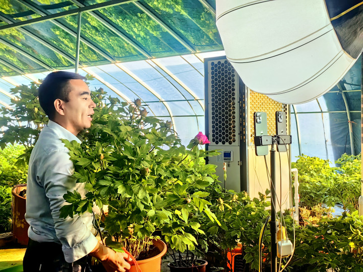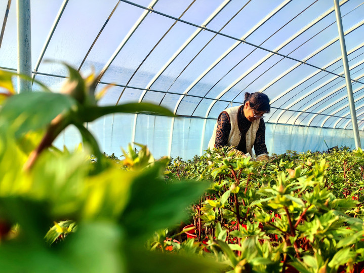 “在自然环境下培育的牡丹,售价为几十元。而通过装盆和反季节催花,牡丹的身价能攀升数倍,极大提升了经济效益,能够实实在在为花农增收。”赵文双说。
